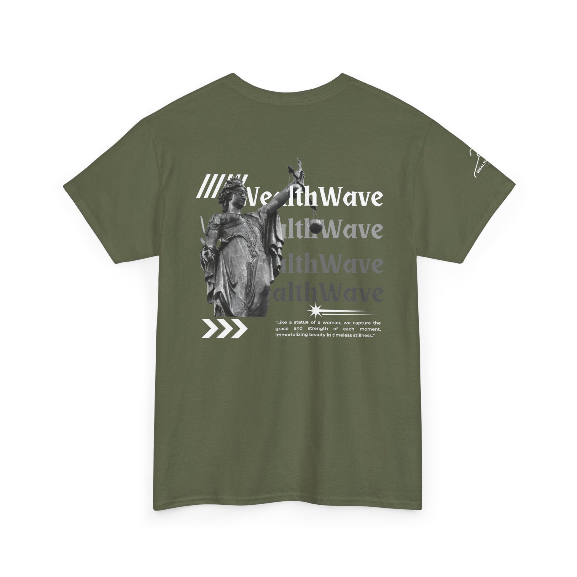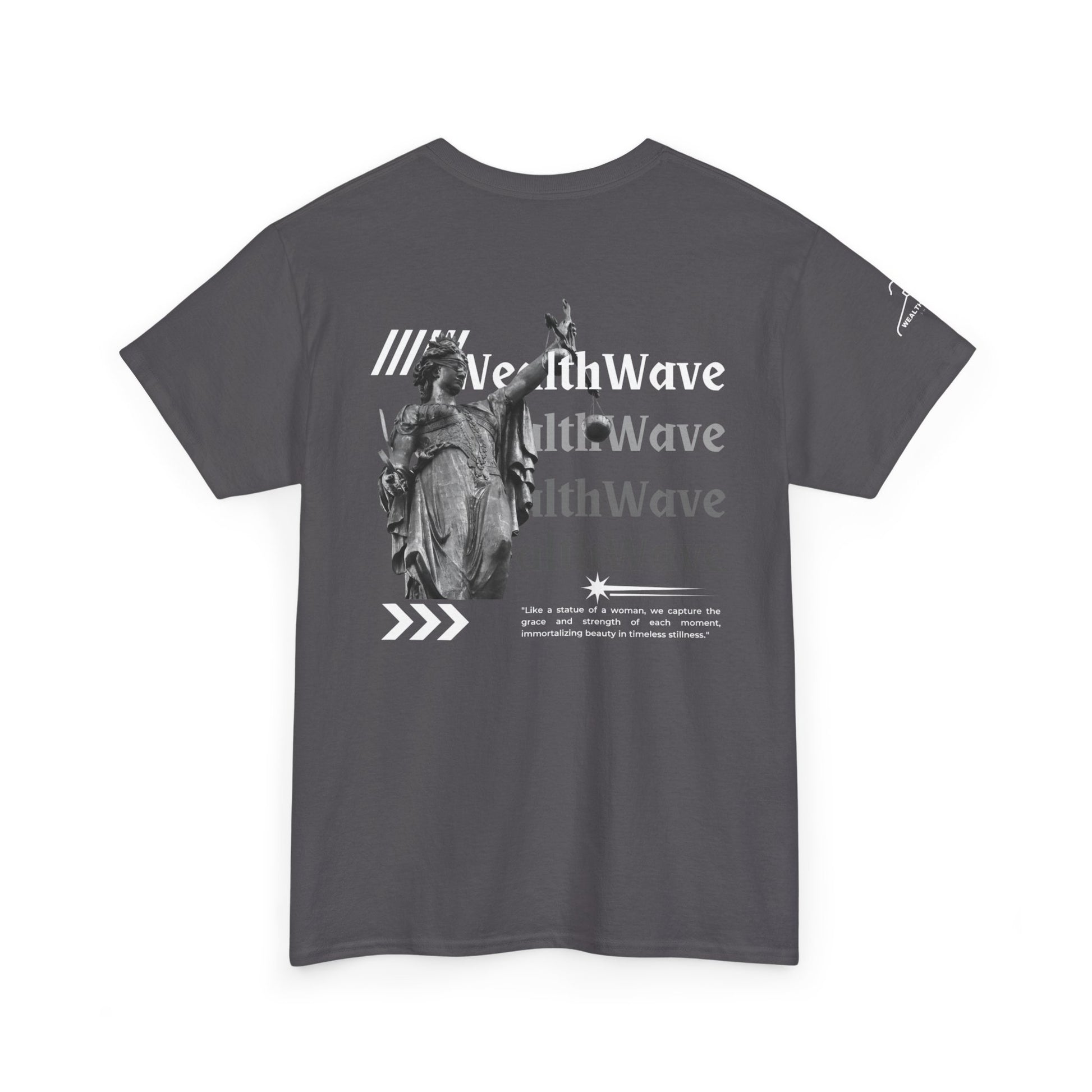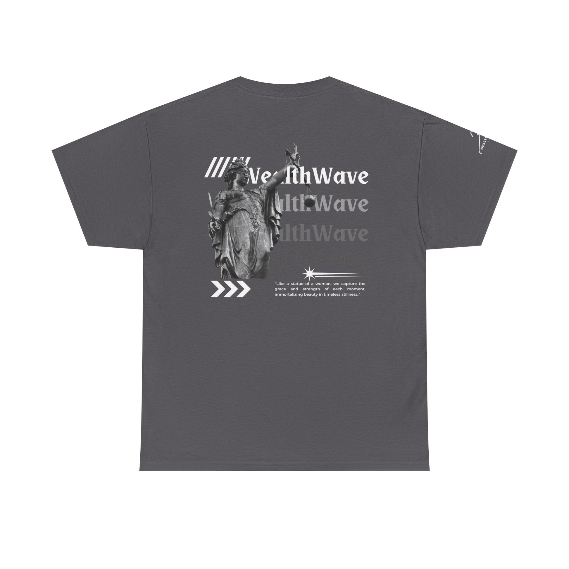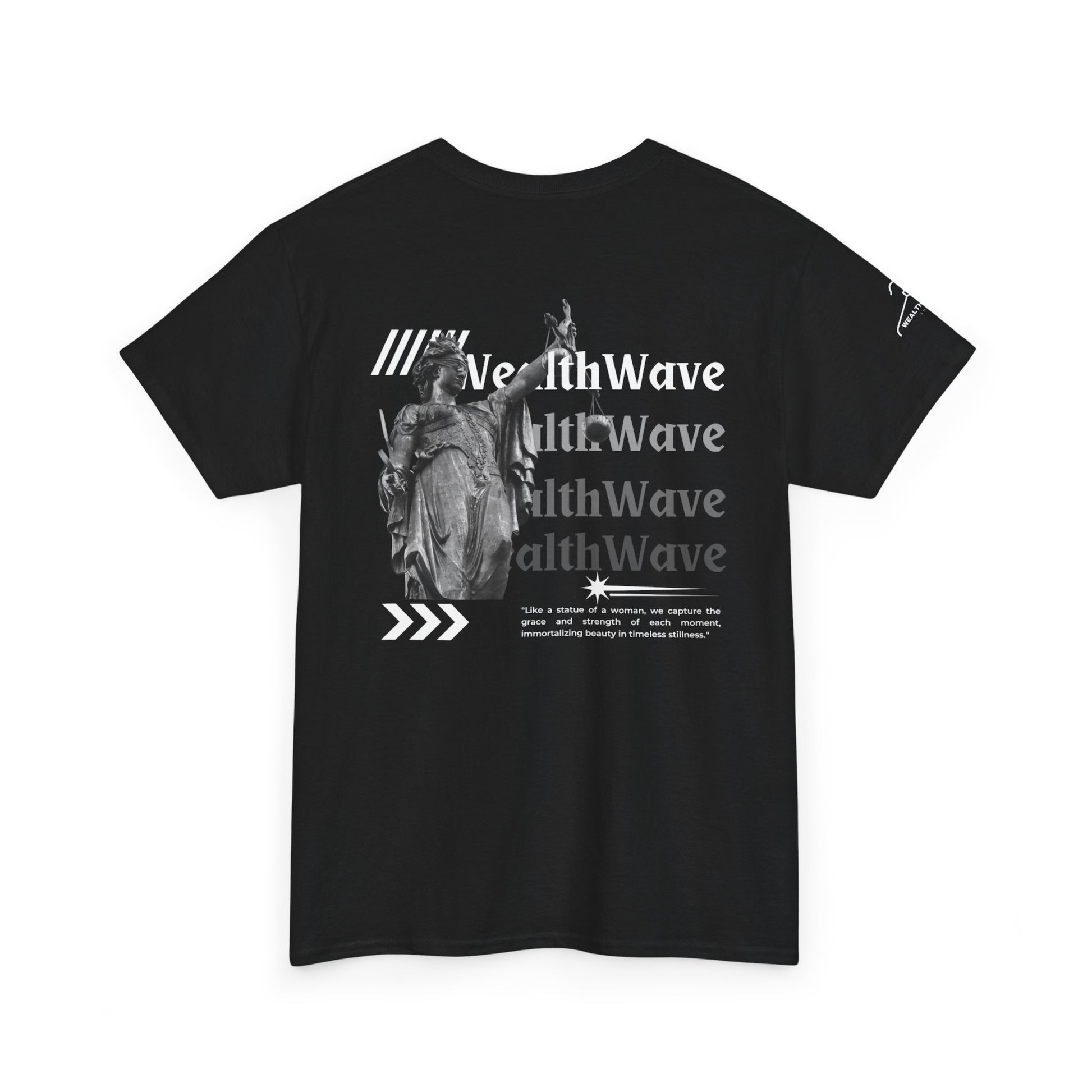 A soft, classic-fit tee that wears like a trusted favorite. This black crewneck features a muted grayscale graphic across the back that blends vintage statue imagery with bold typographic rhythm — layered words, arrow accents, and a subtle distressed texture give it an urban, art-school edge. The shirt sits relaxed on the body and the ribbed collar holds shape wash after wash. It’s the kind of tee you reach for when you want to feel quietly confident: cool without shouting, stylish without fuss. Wear it with lived-in denim, under a denim or leather jacket, or layered with a long-sleeve for cooler nights. The breathable medium-weight cotton keeps it comfortable through seasons, while the tear-away label and reinforced shoulder tape mean comfort is built in. A muted statement piece for days when mood and aesthetic matter.